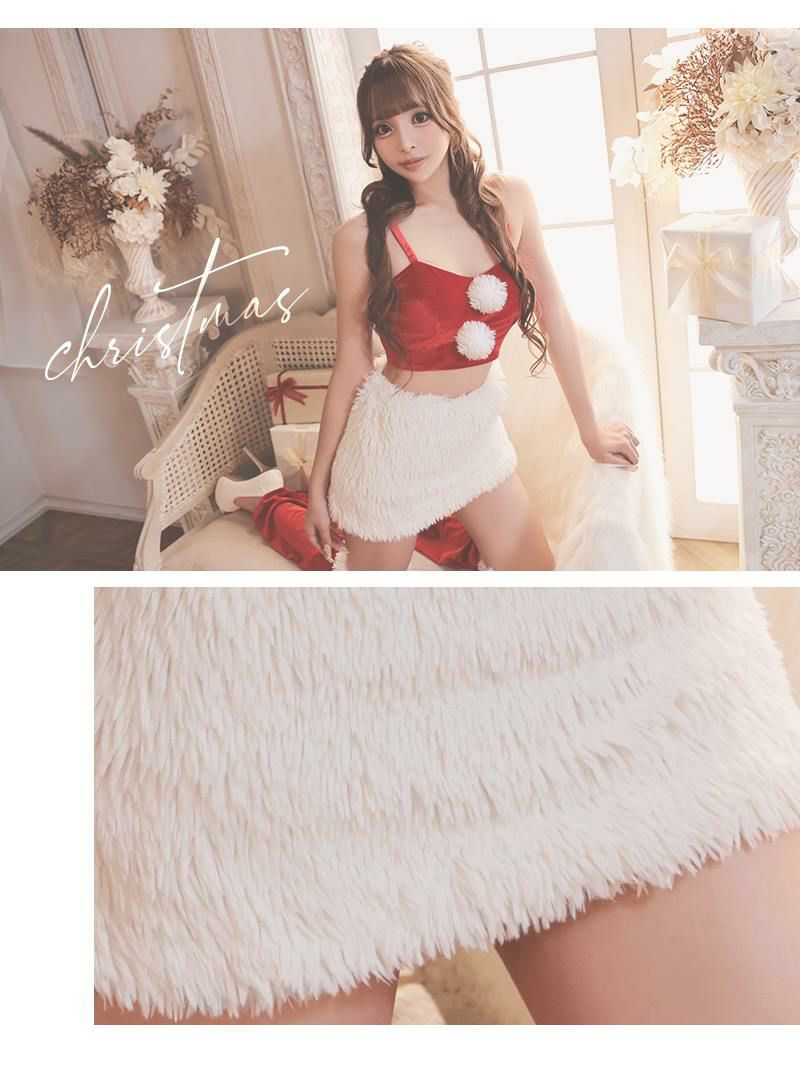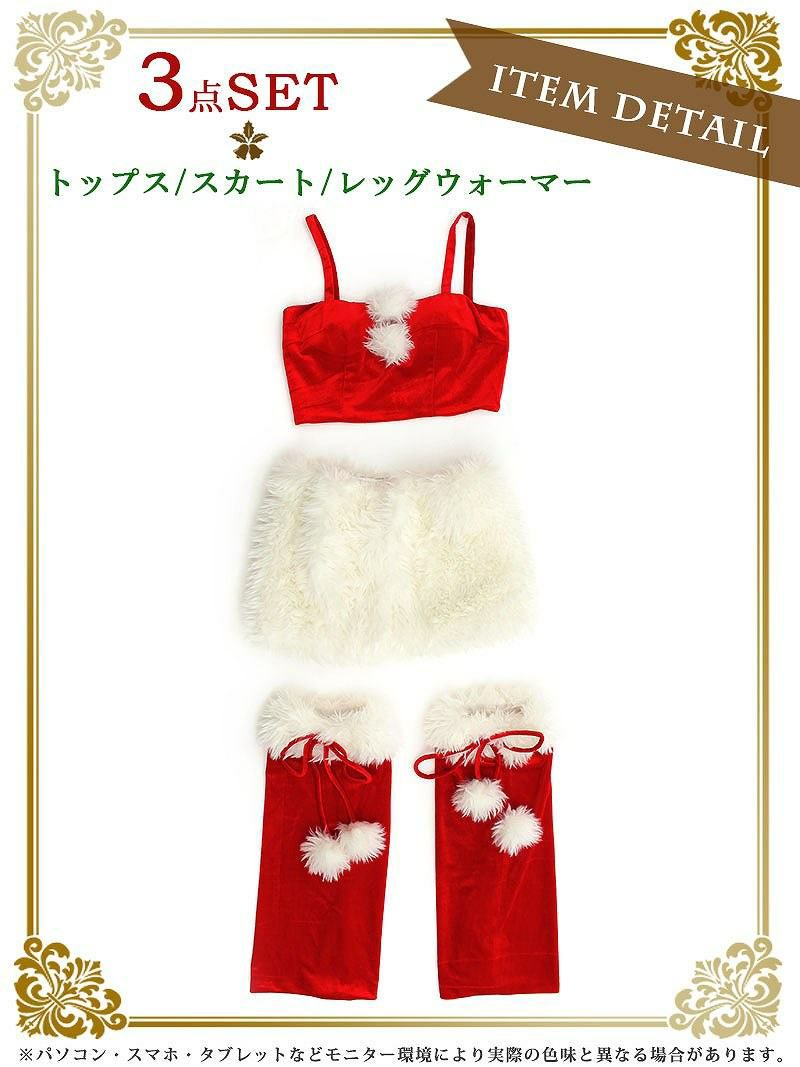 私映え!ふわふわタイトファーがSexy サンタコスプレ ファースカートお腹魅せクリスマス衣装3点セット【Ryuyu】(S/M/L)(レッド)