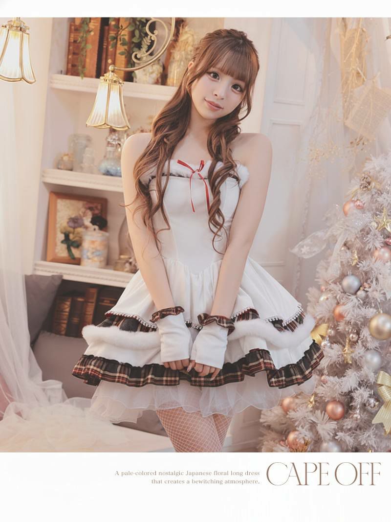 あざとかわいいキャットサンタコスでキャバカワ♪ サンタコスプレ ホワイトキャットギャルサンタコスプレ8点セット みりちゃむ 着用【Ryuyu】(フリーサイズ)(ホワイト)