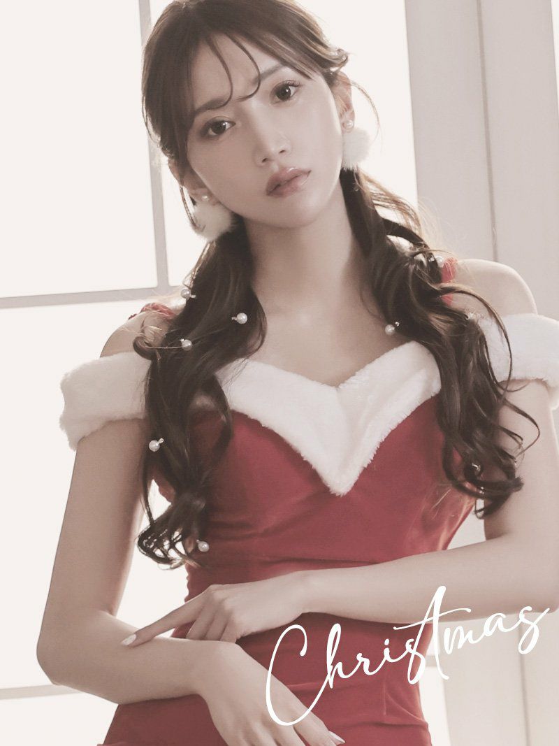 luxuaryなサンタドレスできらびやかに♪ サンタコスプレ オフショルデザインsexyタイトクリスマスドレス まぁみ 着用 ギャルサンタ【Ryuyu】(S/M/L)(レッド)