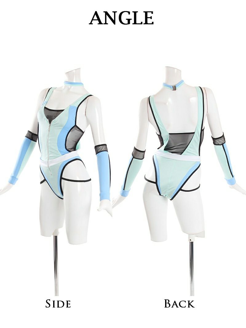 撮影会にもオススメなSexy水着! スーパーSALE¥7580→¥6063! 水着 近未来風セクシーコスプレモノキニハイレグ競泳水着 レディースみずぎ4点セット【Ryuyu】(S/M)(ブルー×ホワイト/スカイブルー×グリーン)