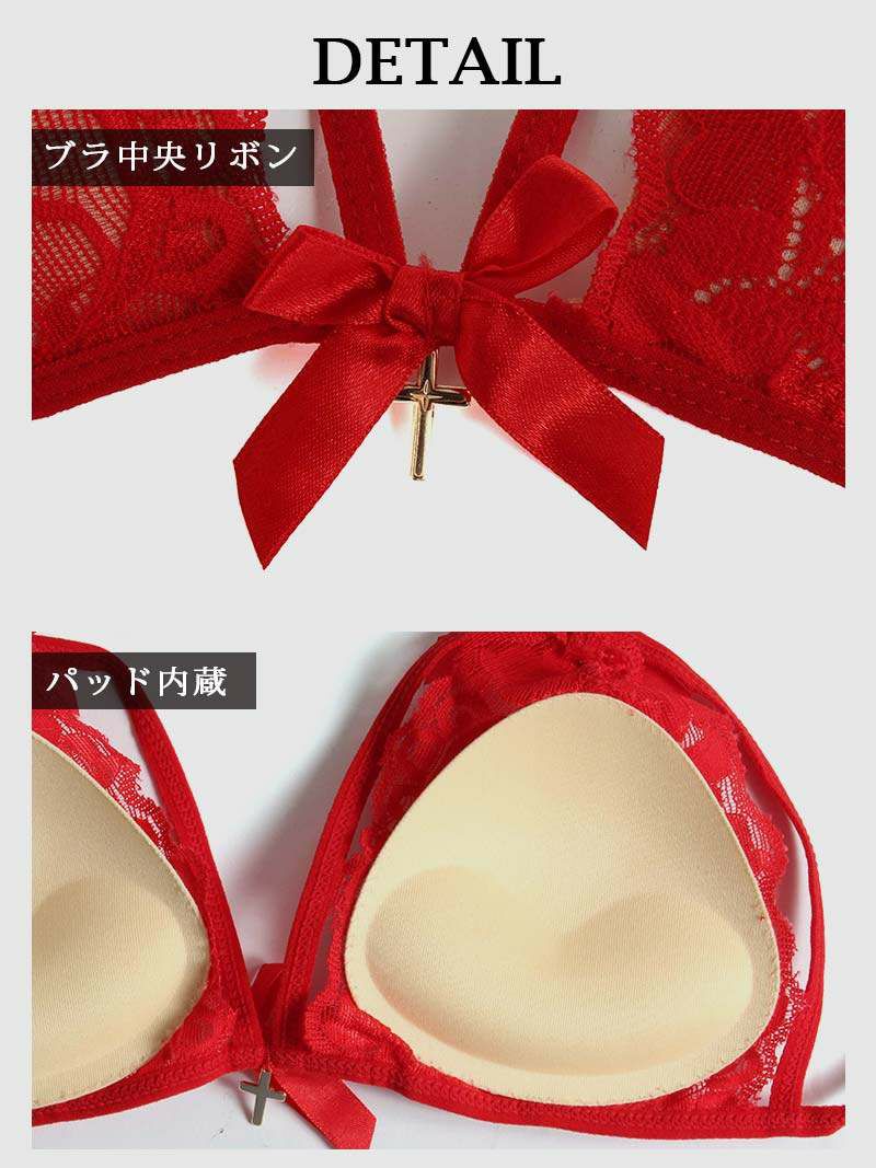 胸元にはリボンと十字架チャームがあしらわれており、レース素材がえちかわを演出してくれます。