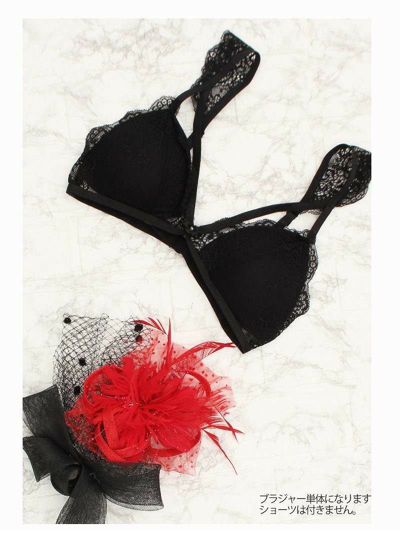 クロスコードが色気を際立たせるSEXYランジェリーは繊細なレースデザインの黒ブラジャー。