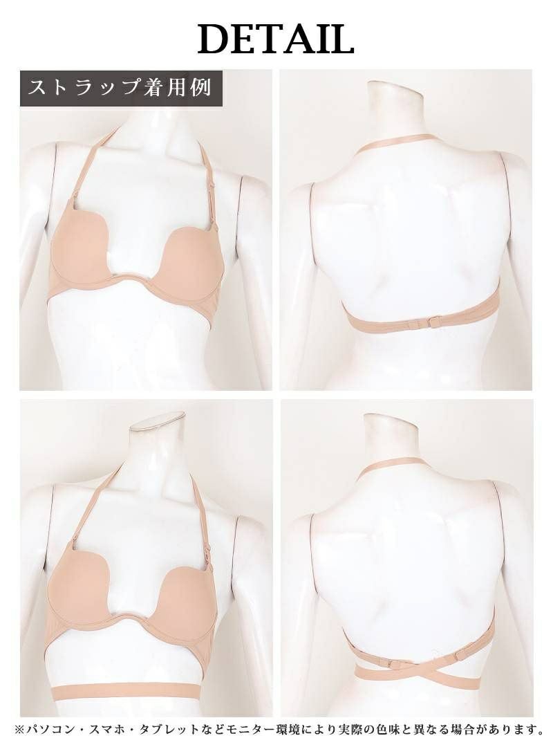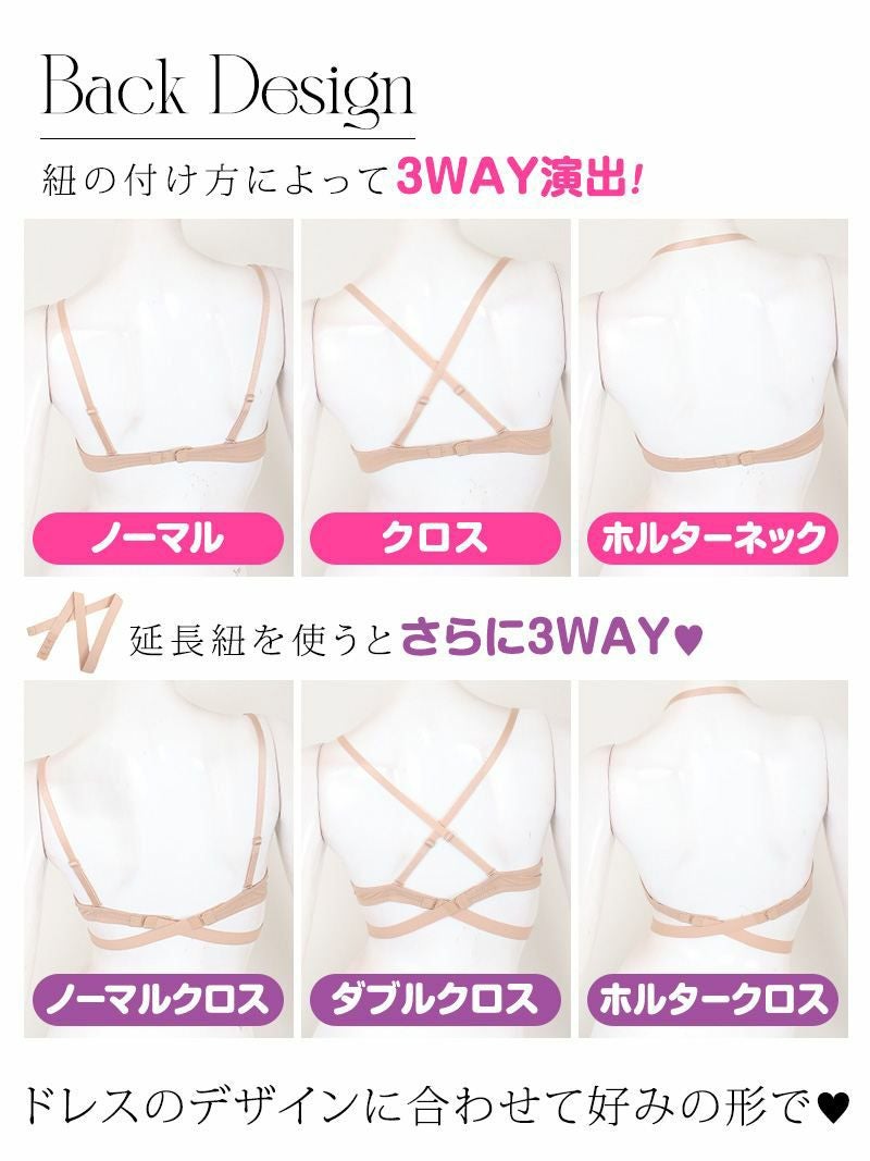 ドレスに合わせて着方が選べる!盛れパッド付き背中あきベージュブラジャー【Ryuyu】