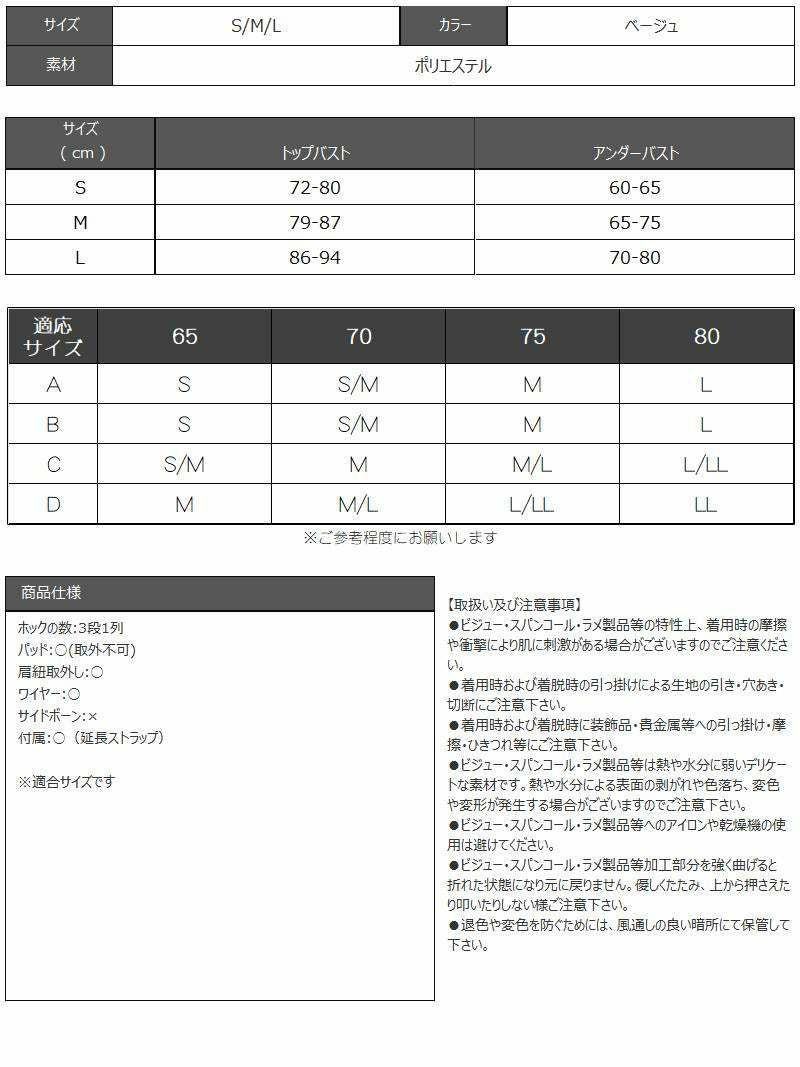 動いてもバストが崩れにくく、長時間キレイなシルエットをキープできるベージュカラーのブラジャーです。