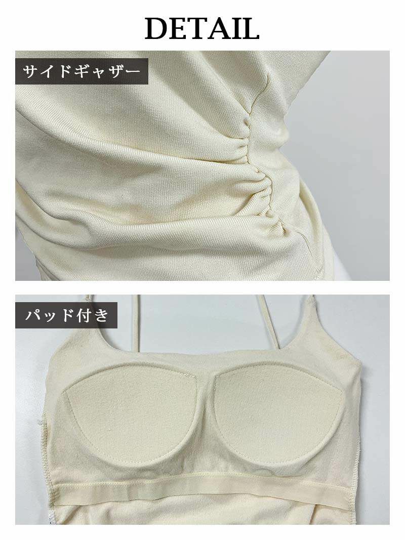裏起毛デザインサイドギャザーあったかカップ付きキャミソール【Ryuyu】