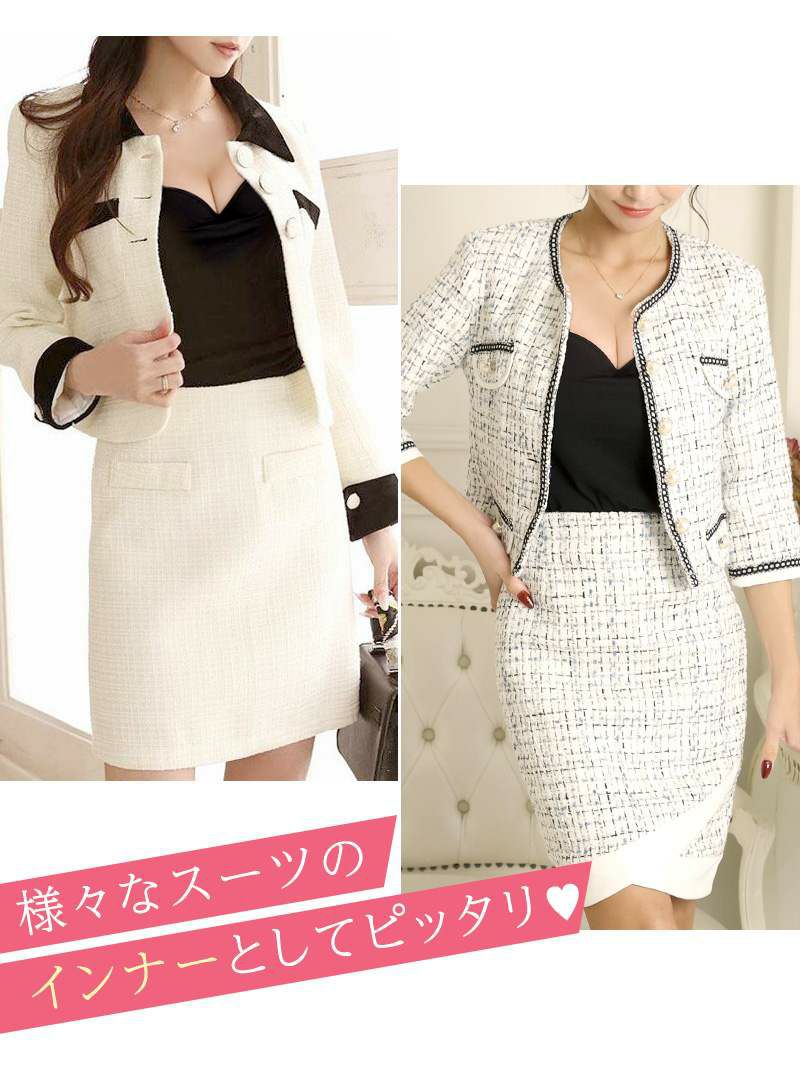 スーツのインナーとしても使いやすく、黒のシックなカラーで大人っぽく仕上げました。