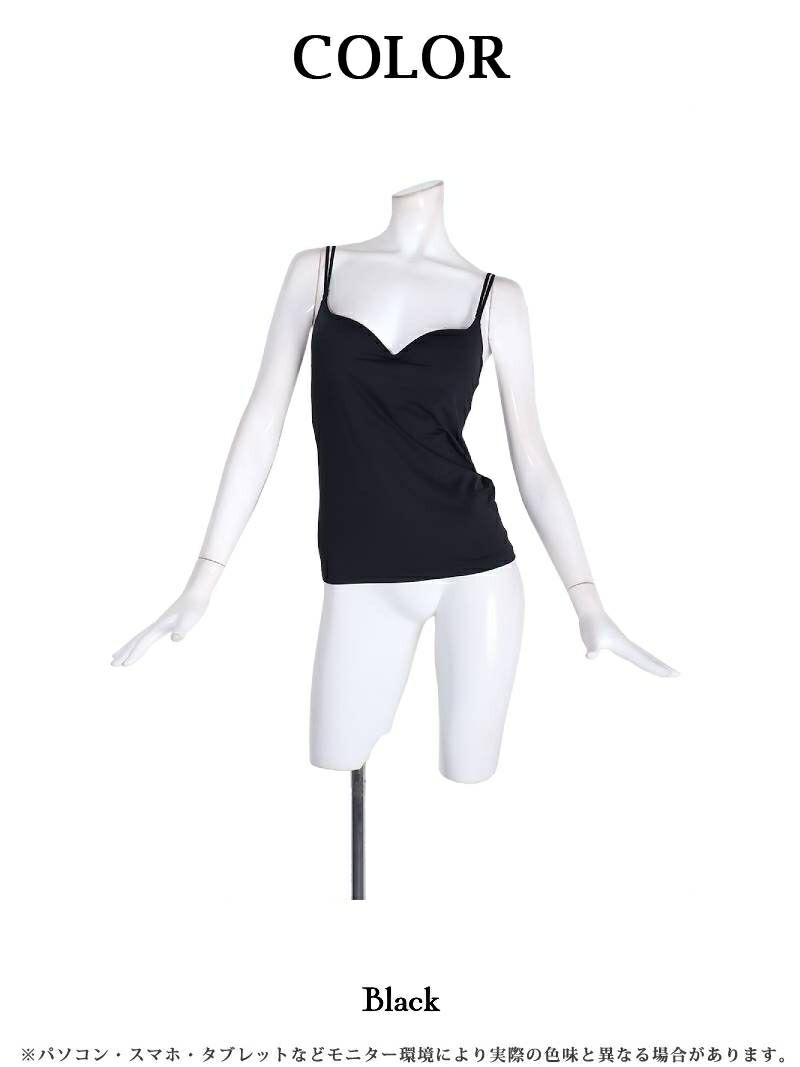 Sexyな背中&谷間で魅せるインナー Sexy谷間見せダブルストラップキャミソール OEO【Ryuyu】(S/M/L/XL)(ブラック)