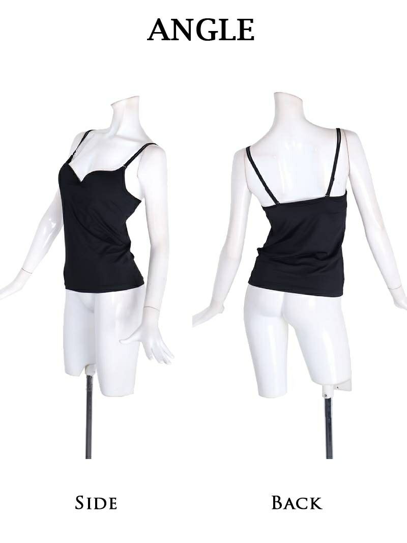 シンプルながらもSexyな雰囲気を演出する無地のカップ付きキャミインナー。