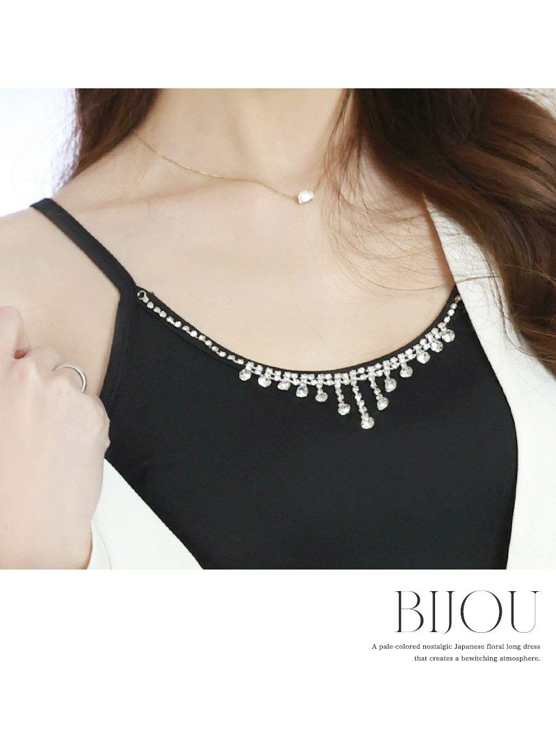 ラインストーンが煌めく、上品なキャミインナーでキャバ嬢の装いを格上げ。