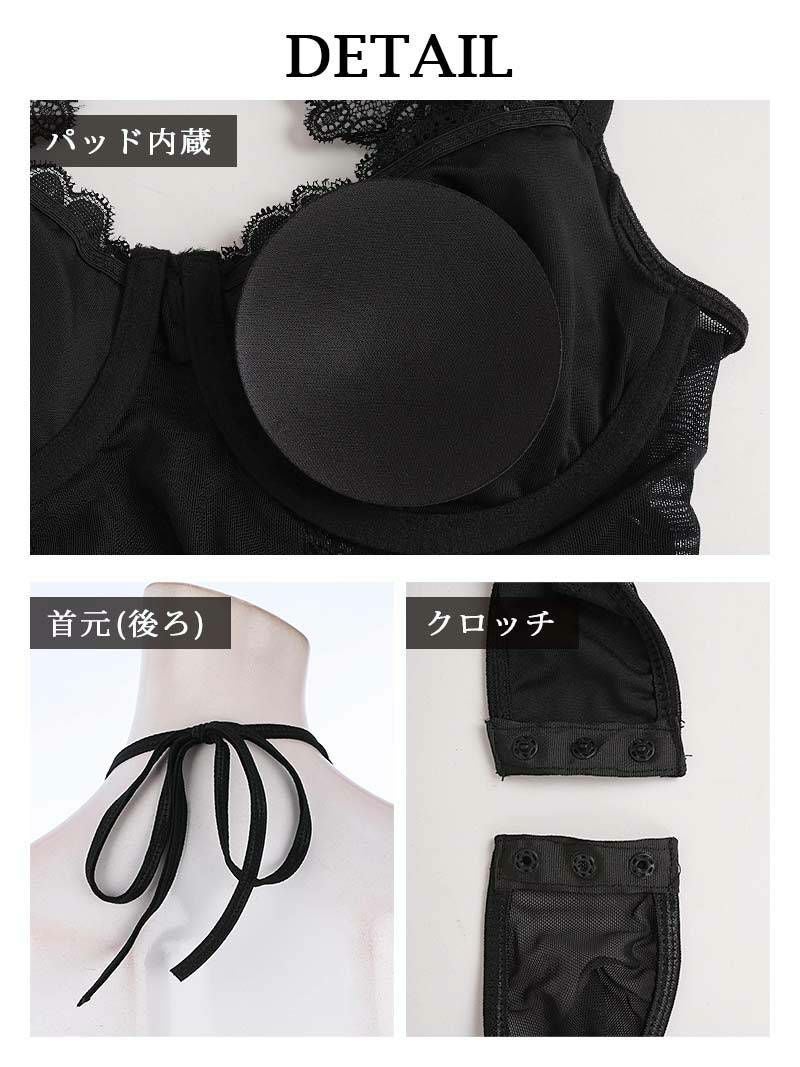 5. コスプレ レースボディースーツコスプレランジェリー【Ryuyu】(M/L)(ブラック/ホワイト)