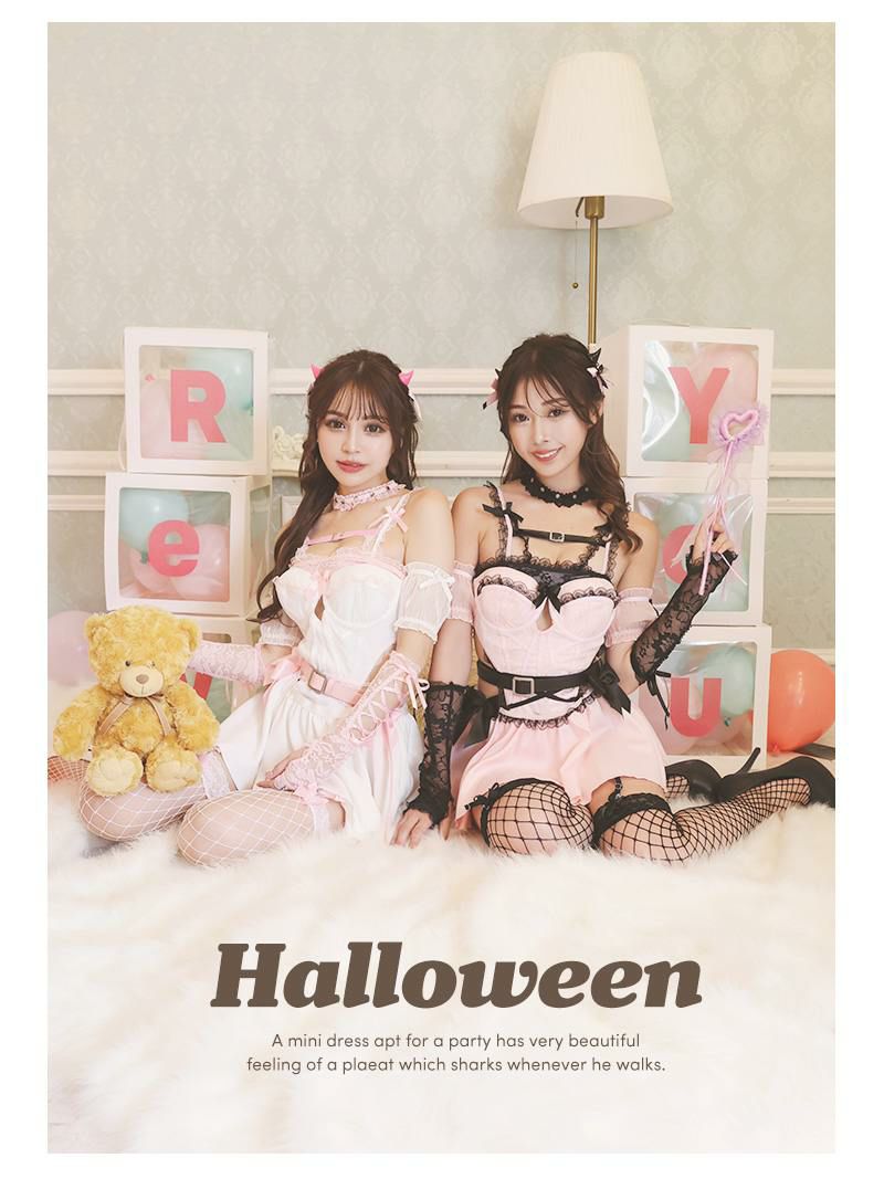 レースやフリルなどの地雷系チックな夢かわいい雰囲気も兼ね備えたハロウィンコスプレです。