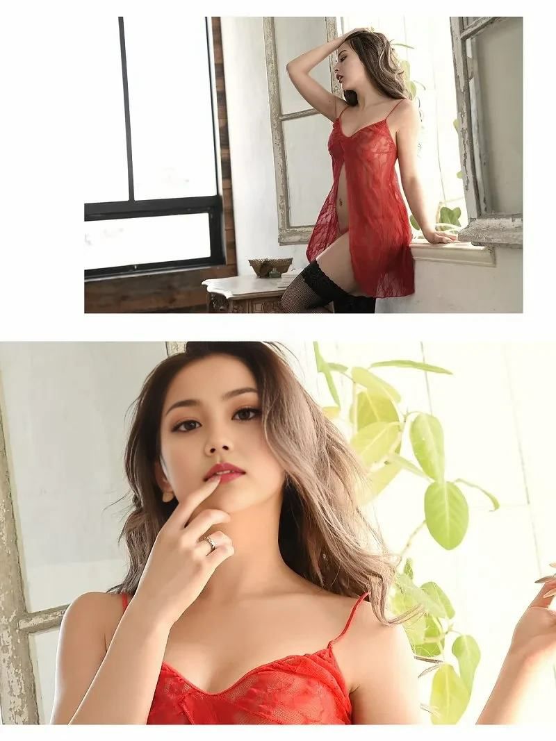 6. スーパーセール¥2780→¥1390! 総レースワンカラーキャミソールベビードール 2点セットバストカシュクールランジェリー【Rwear】(フリーサイズ)(ブラック/レッド)