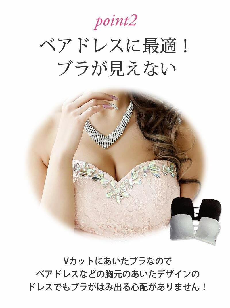 ベアラインでもきちんと収まるデザインなのでベアドレスや胸元が大きく開いたキャバドレスでもOK