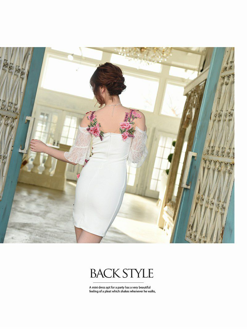 トレンドの3Dフラワー刺繍をふんだんに使った高級感溢れるタイトミニドレスは、キャバクラやラウンジで絶対目立てる一着。