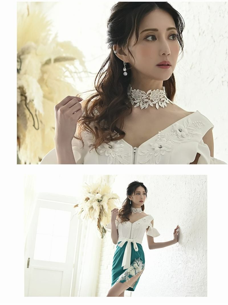 【Belsia】訳ありアウトレット!華やかな花柄と立体刺繍が特徴のキャバミニドレス。チョーカー付きで高級感満載!