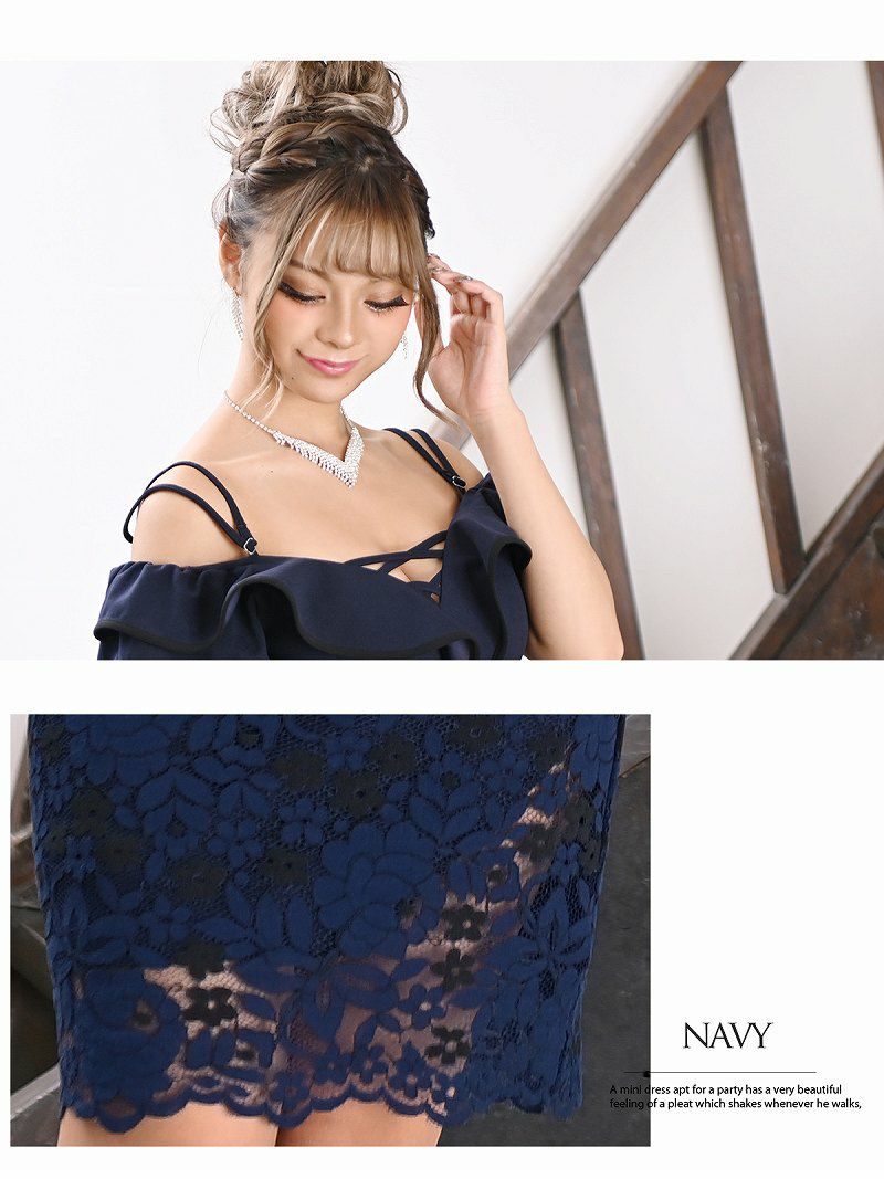 レースたっぷりの豪華なブランドドレス 年末ノルマ達成応援SALE¥7680→¥3840! 【an/アン】 オフショルダースカラップレースタイトキャバドレス えがさり 着用 ミニドレス(S/M)(ホワイト×ブラック/ホワイト×ライトグレー)