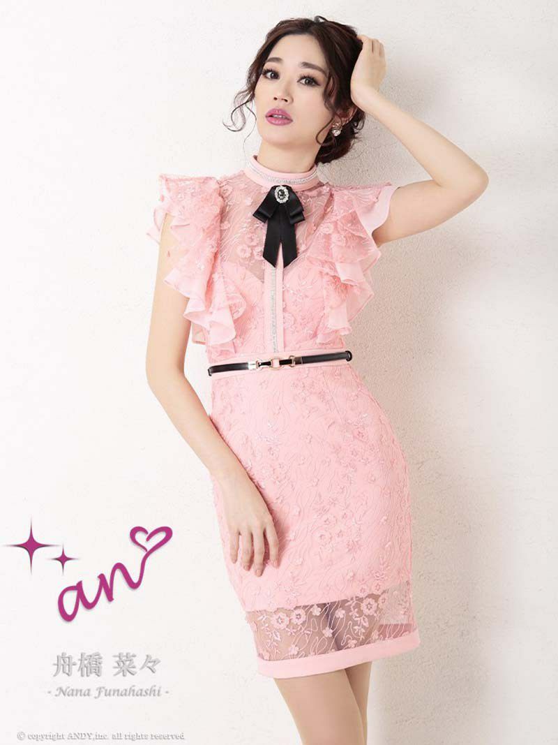 選べる2タイプ!! スーパーセール¥4403→¥3962! ミニマムサイズSALE¥6290→¥4403! ベルト付き花柄刺繍レースミニドレス NATSUNE着用キャバクラドレス【Ryuyu】(S/M/L)(ピンク(フレア)/ホワイト(フレア)/ピンク(タイト)/ホワイト(タイト))