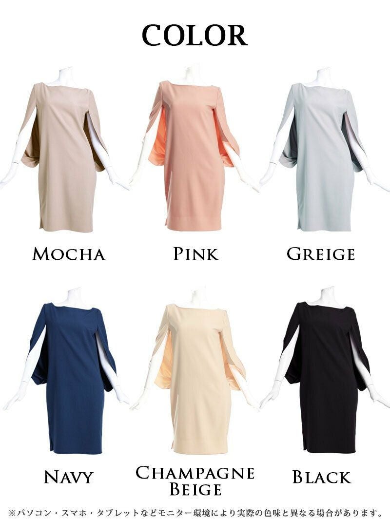 6. ケープスリーブ×エレガントパーティードレス【Ryuyu】 OEO(M/L)(モカ/ネイビー/ピンク/グレージュ/ブラック/シャンパンベージュ) ptpl