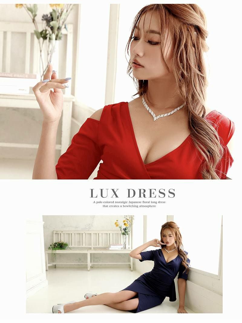 シンプルオープンショルダーミディ丈キャバドレス りおん着用