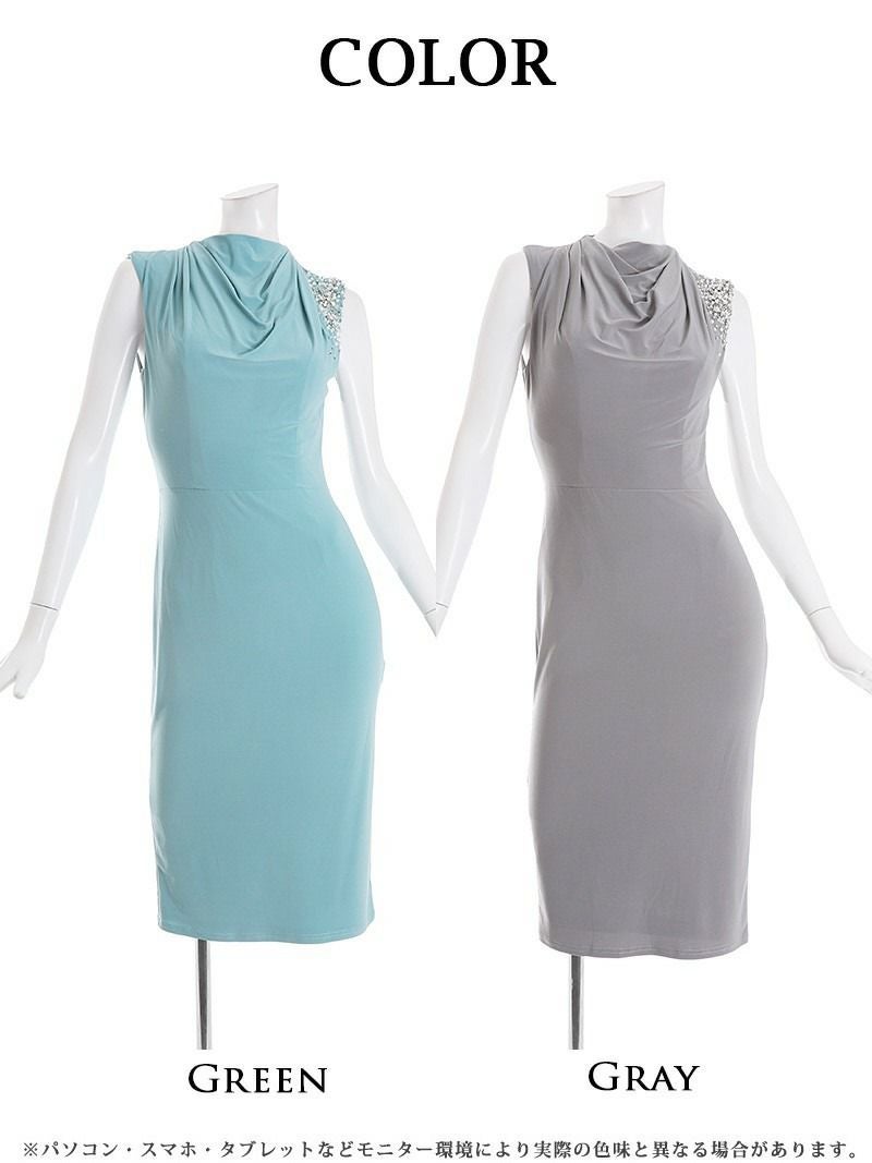 4. 膝丈ハイネックキャバラウンジミニドレス【Veautt/ヴュート】(XS/S)(グリーン/グレー)
