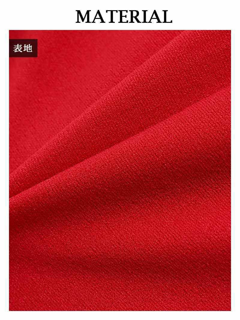 5. 膝丈デザイン大人シルエオフショルダーキャバドレス りおん 着用 ミニドレス【RyuyuChick】(S/M/L)(ブラック/レッド)