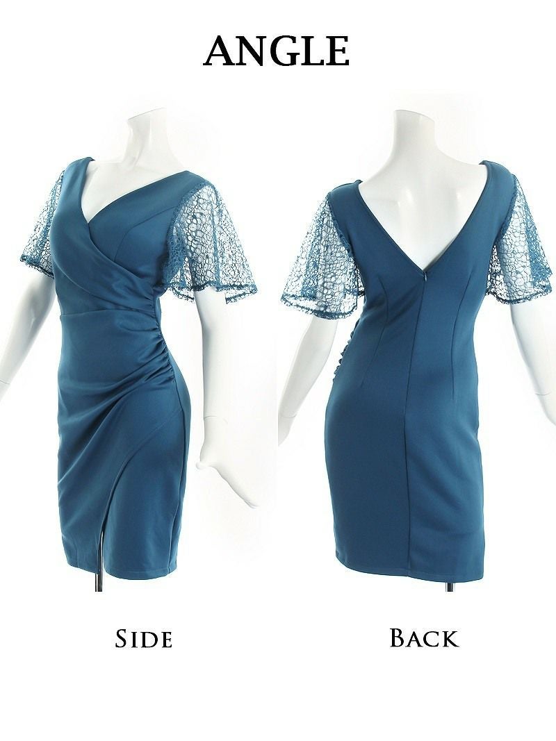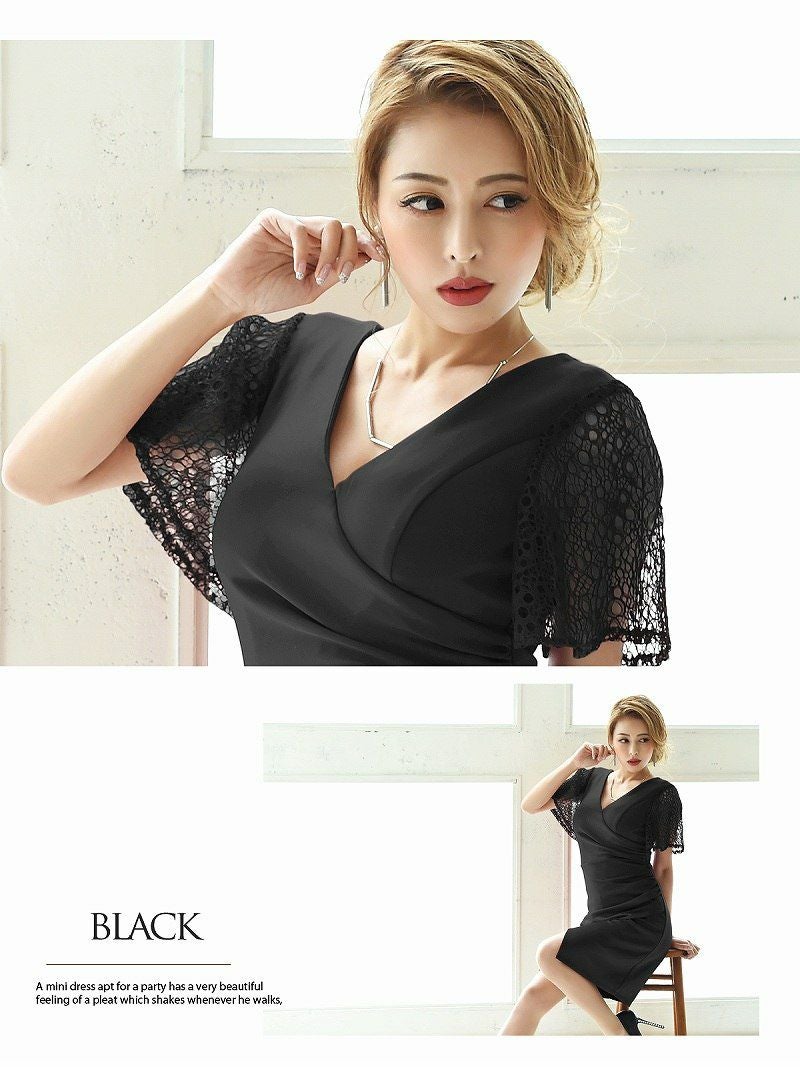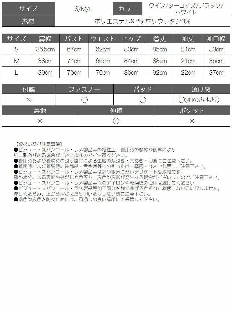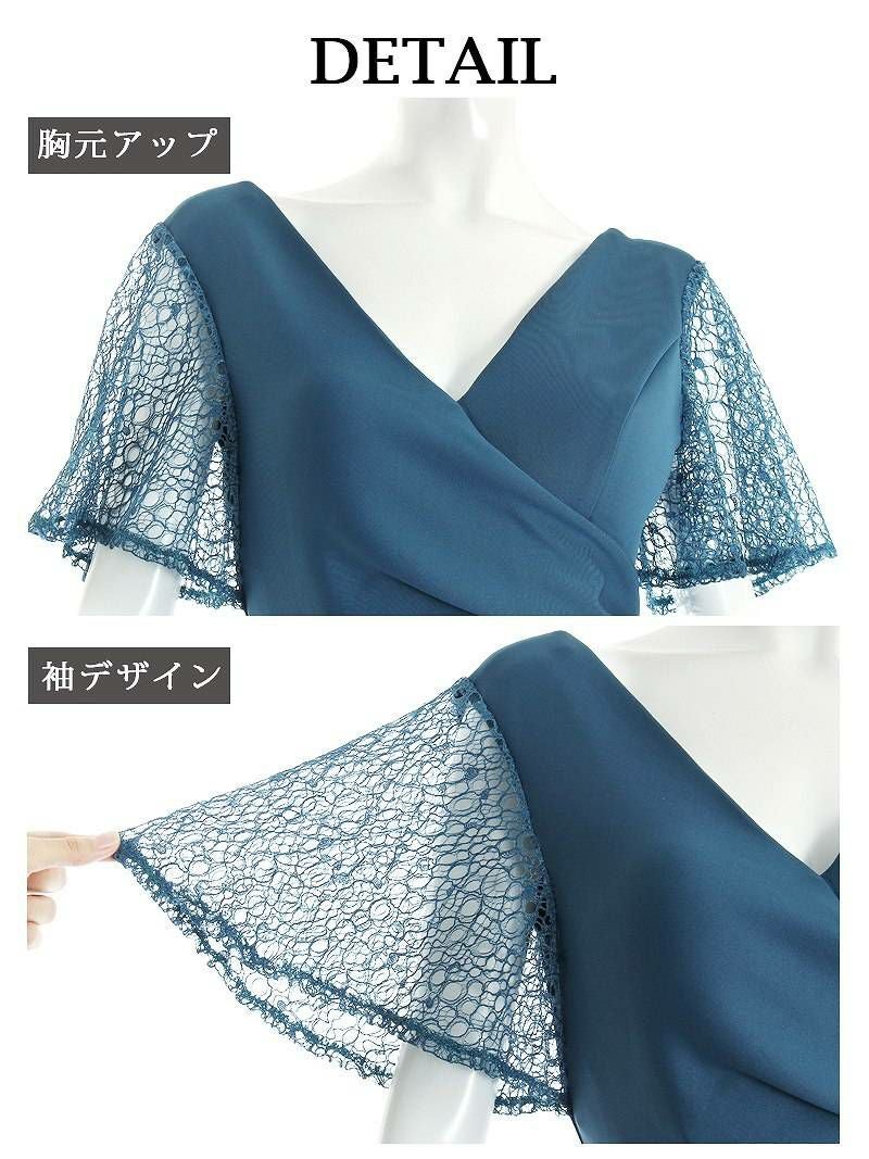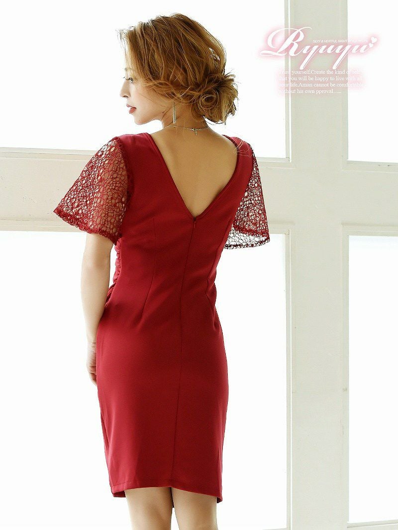 訳ありレース袖がsexy 【訳ありアウトレット】膝丈ドレープデザイン袖付ミニドレス【Ryuyu】(S/M/L)(ワイン/ターコイズ/ブラック/ホワイト) ptpl