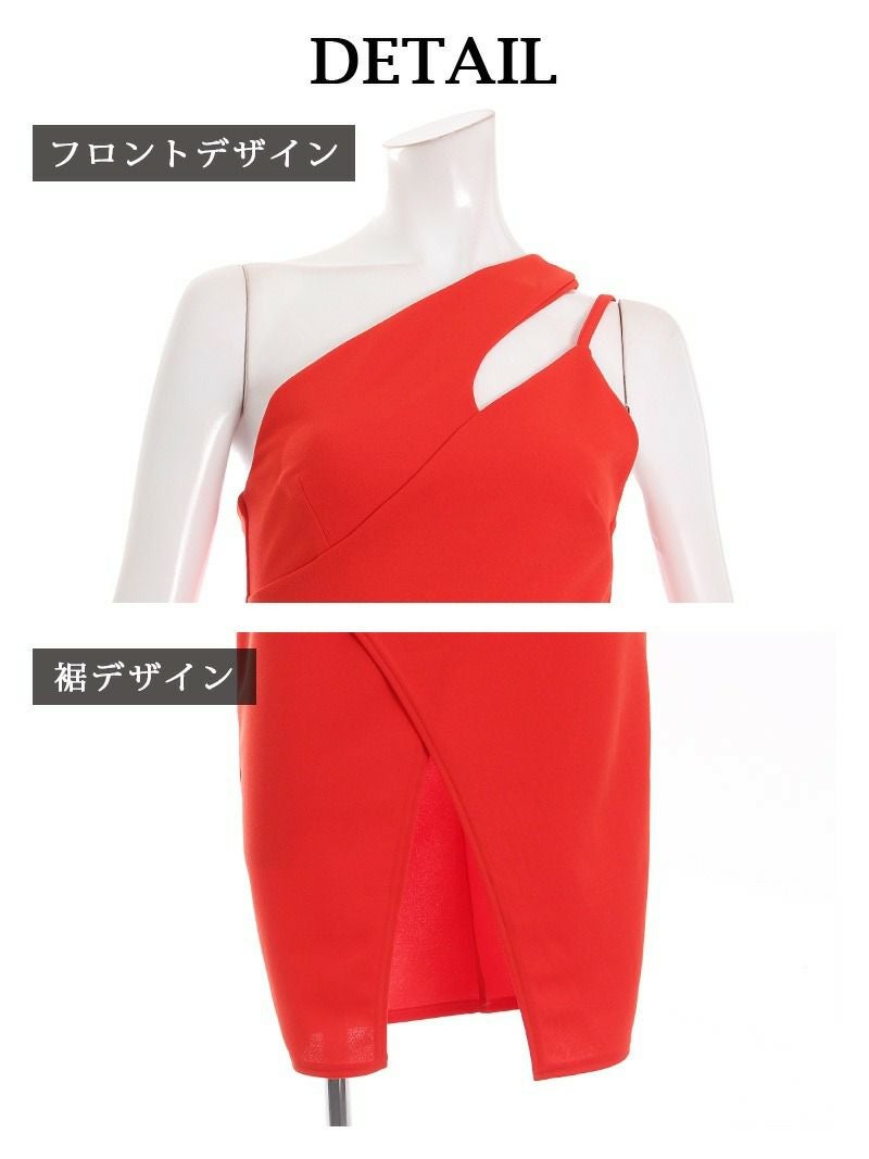 スリットが入った足魅せデザインと、カシュクール風ワンショルダーがセクシーさを引き立てます。