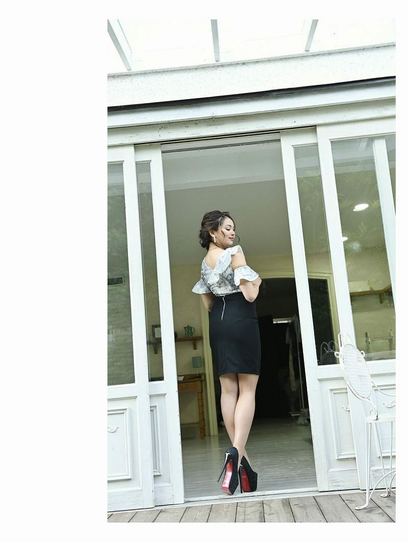 5. 【訳ありアウトレット】フラワーフリル袖キャバクラミニドレス【Belsia】(S/M/L)(ブラック) ptpl