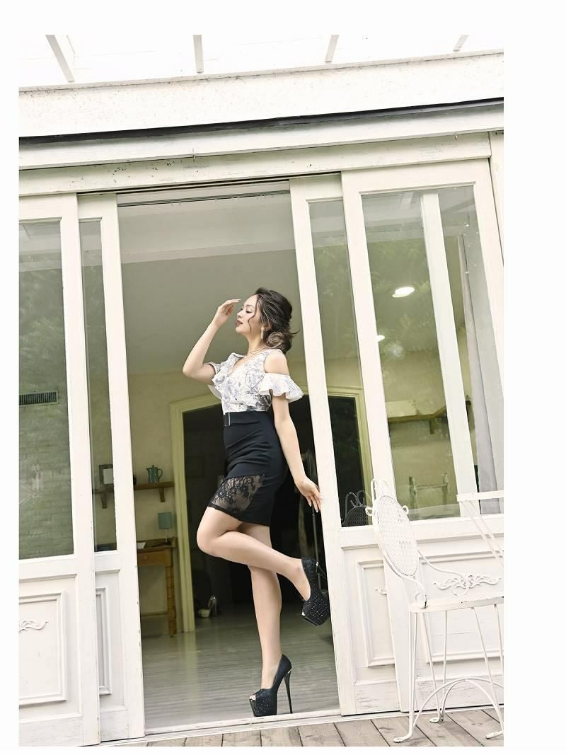 【訳ありアウトレット】フラワーフリル袖キャバクラミニドレス【Belsia】