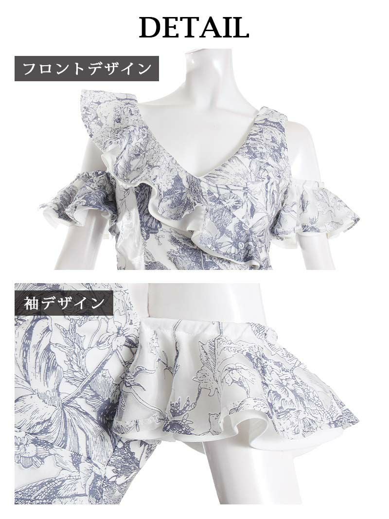 大人の魅力を引き立てる花柄とレースがポイント。オフショルダーと袖付きデザインで上品な印象に。