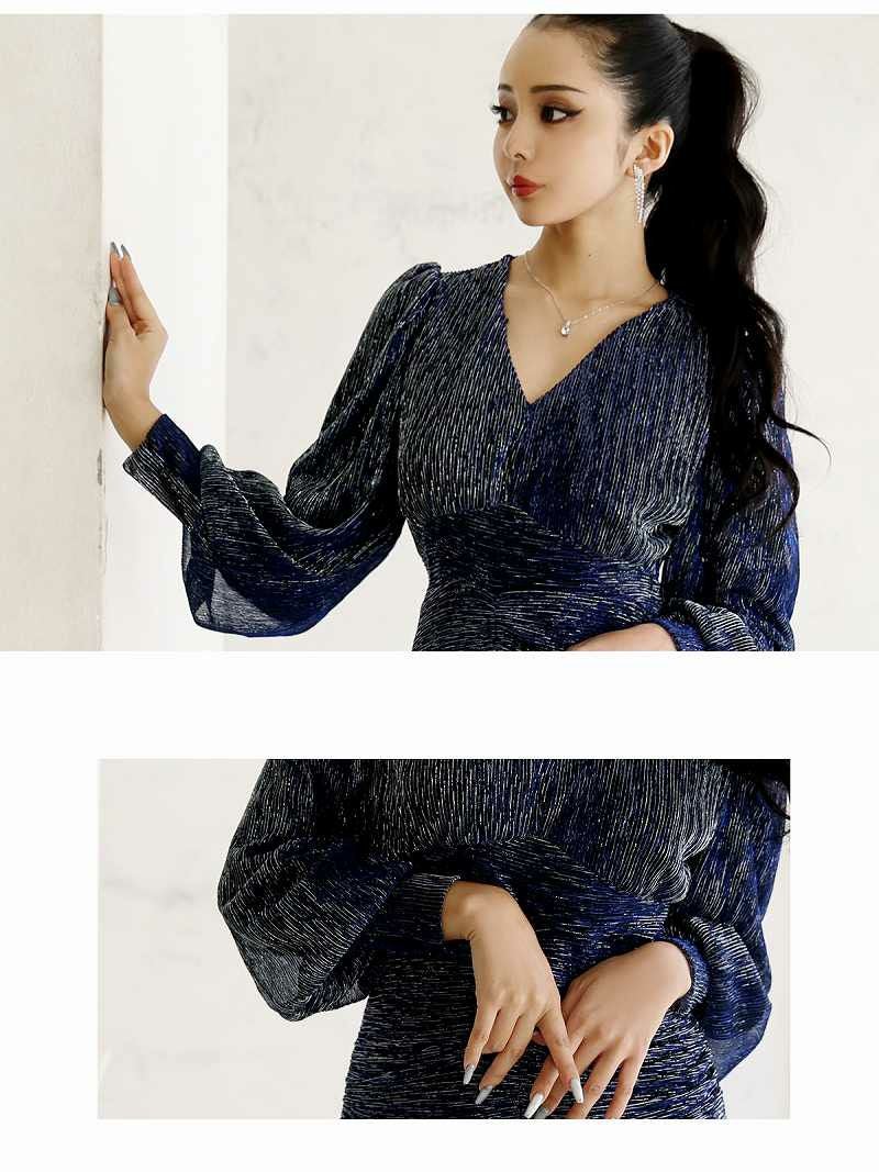 5. 【訳ありアウトレット】長袖セクシー韓国美女キャバミニドレス【DAYS PIECE】(S/M/L)(ブルー) ptpl