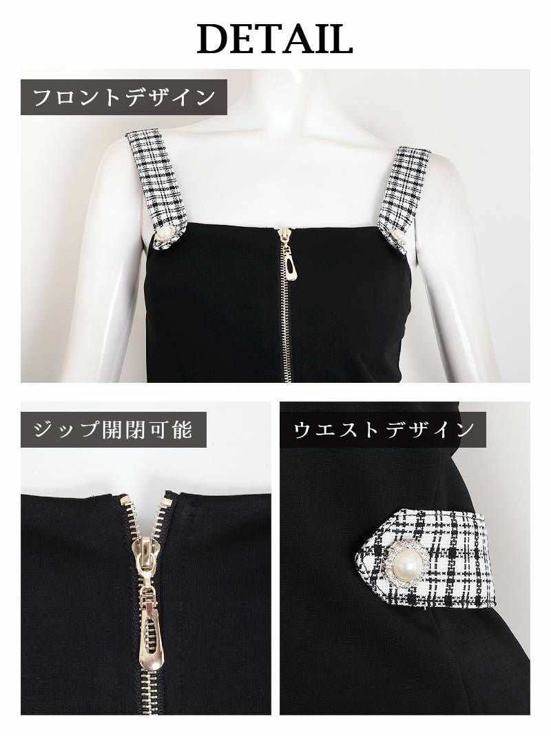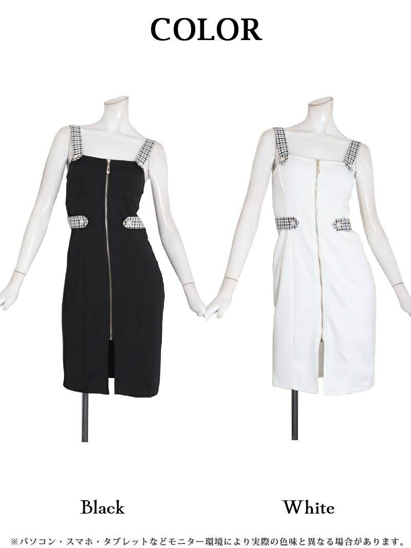 4. チェックパイピング膝丈ドーリージップキャバドレス【Ryuyu】(S/M/L)(ブラック/ホワイト) ptpl