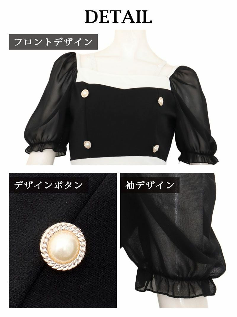 5. クラシカルシフォン袖オフショルミディ丈キャバワンピース 加賀美早紀 着用 キャバドレス【Belsia】(S/M/L/XL(2L))(ブラック/ホワイト) ptpl
