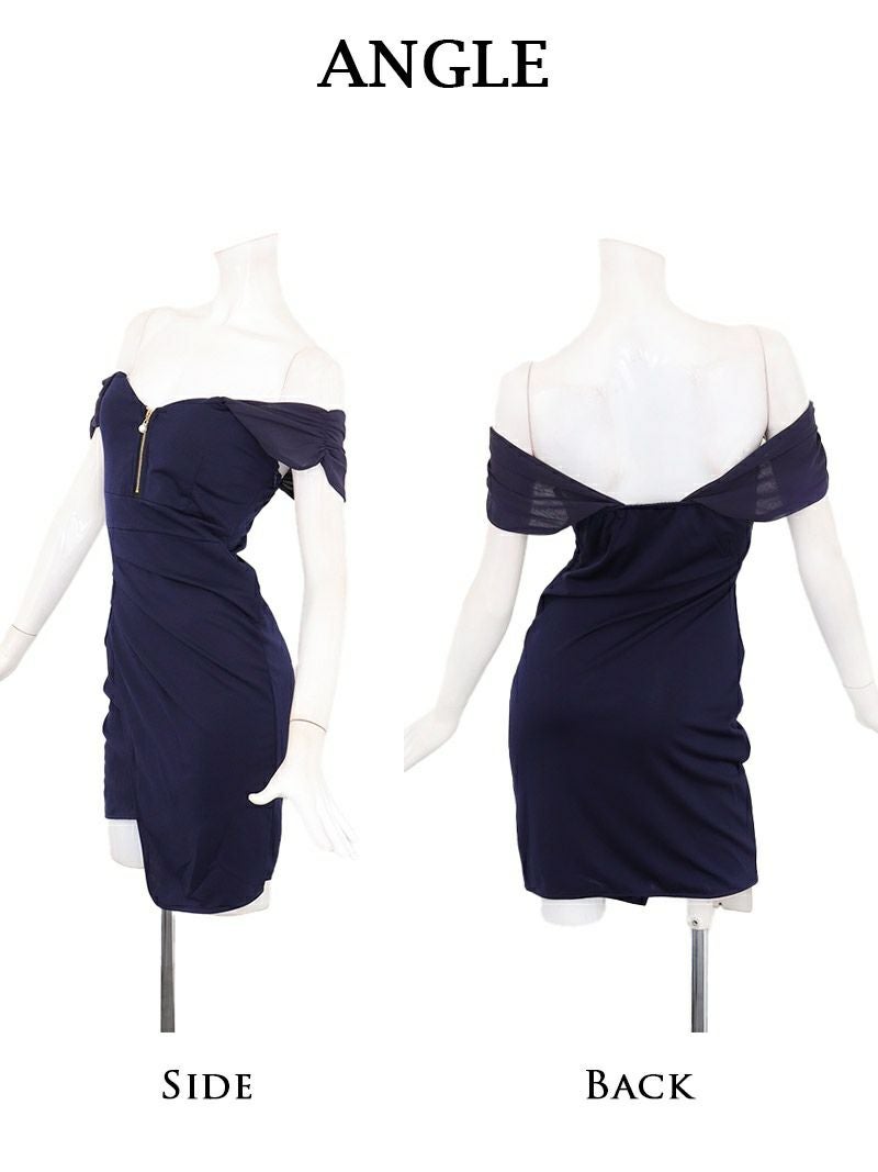 5. フロントジップチャームオフショルダータイトミニドレス りせり 着用 キャバドレス【RyuyuChick】(S/M/L)(ブラック/ワイン/グリーン/ネイビー)