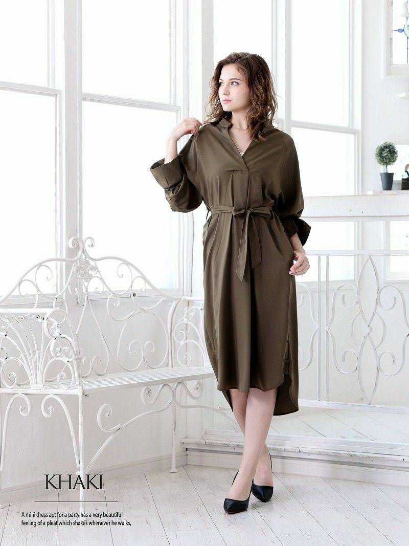 4. 【訳ありアウトレット】上品クールゆったり膝丈韓国キャバワンピース【DaysPiece】(M)(ブラック/ホワイト/カーキ/グレー/ピンク/ネイビー) ptpl