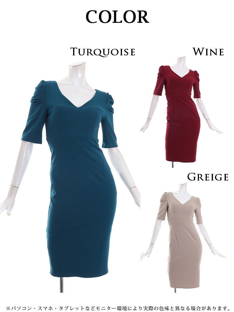 4. 【訳ありアウトレット】シンプル美女ライン韓国キャバワンピース【DAYS PIECE】(S/M/L/XL)(ワイン/ターコイズ/グレージュ) ptpl