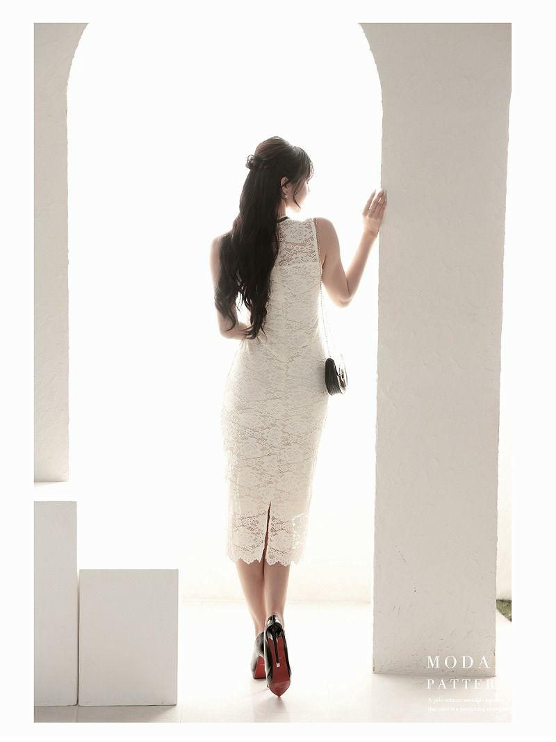 総レースノースリーブ韓国ミディ丈キャバワンピース KANO 着用 韓国ドレス【DAYS PIECE】