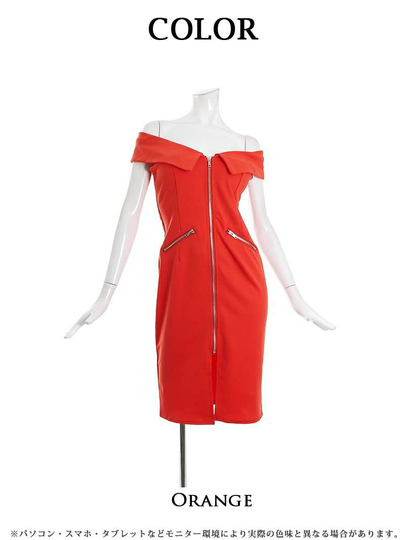 5. オフショルジップデザイン膝丈韓国キャバワンピース KANO 着用 キャバドレス【DAYS PIECE】(S/M/L)(オレンジ)