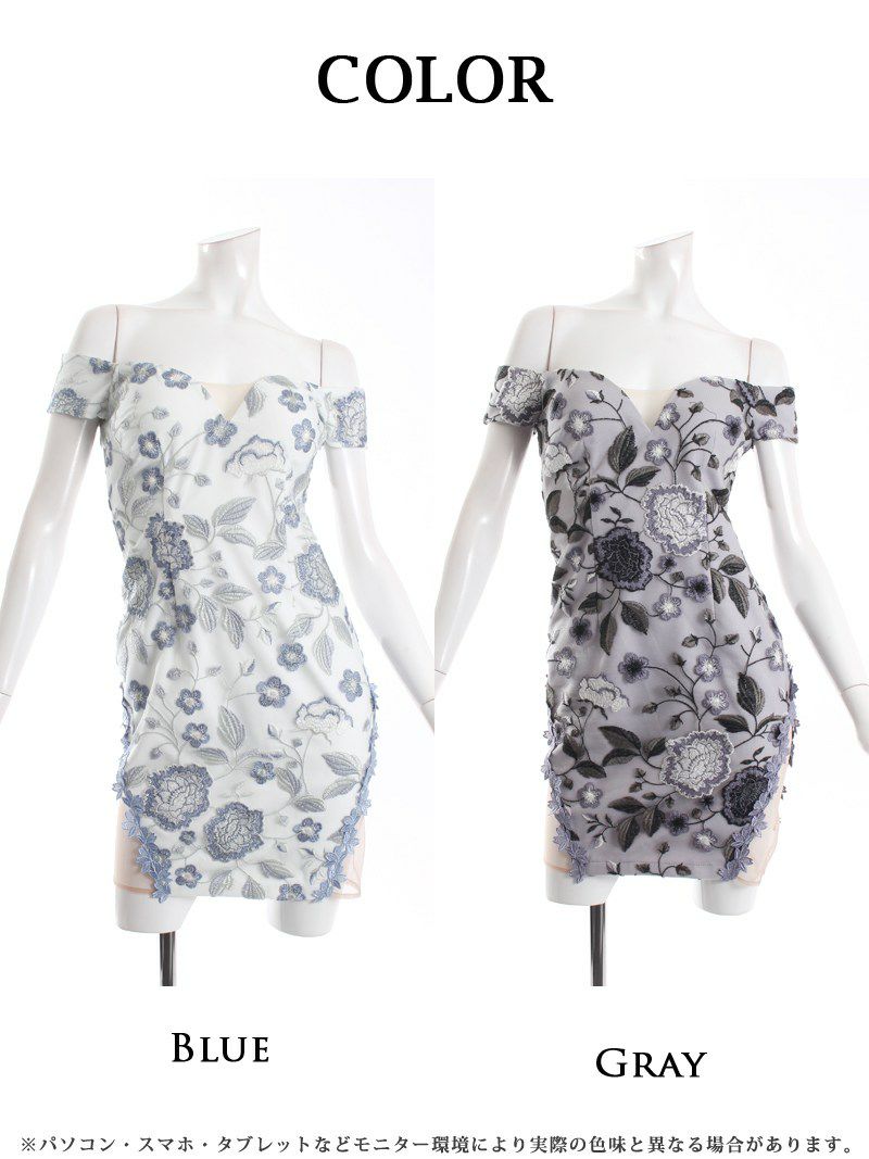 4. 【訳ありアウトレット】花刺繍タイトキャバクラミニシアードレス【Belsia】(S/M/L)(ブルー/グレー) ptpl