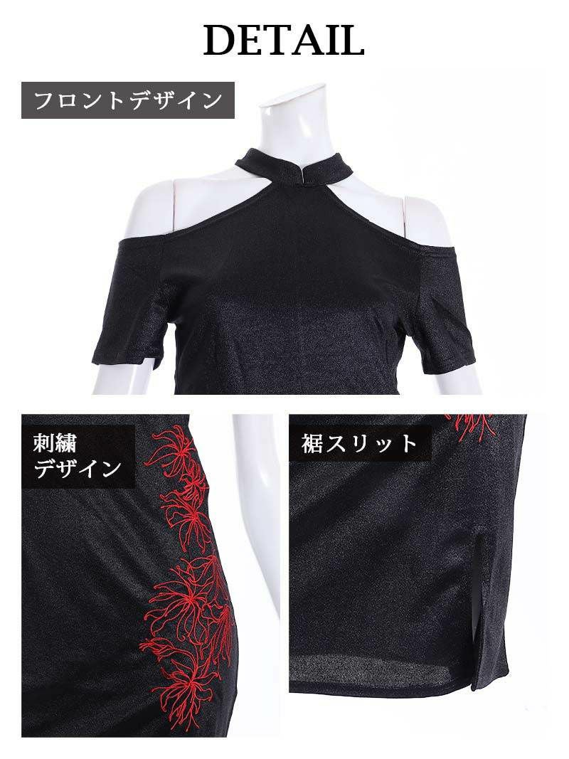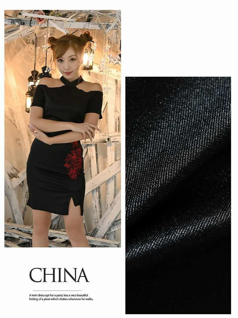セクシーな肩魅せスタイルが魅力のミニ丈キャバドレス。スリット入りデザインで美脚効果抜群!