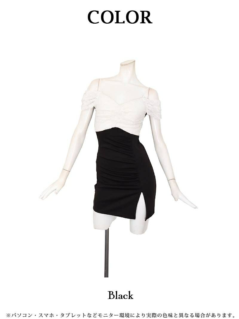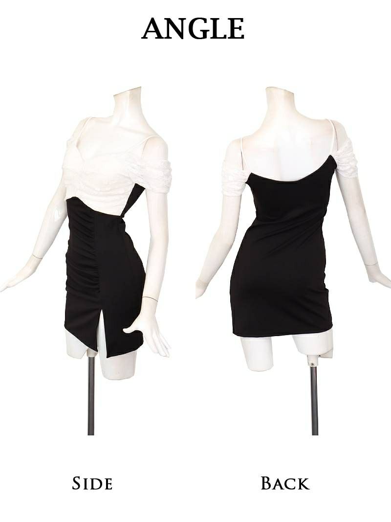 バイカラーレース2WAYオフショルタイトミニドレス りせり 着用 キャバドレス【RyuyuChick】
