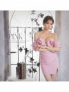 オフショルフリルデザインラメ入りタイトミニドレス【Ryuyu】