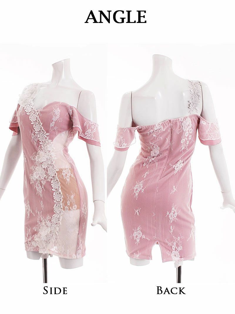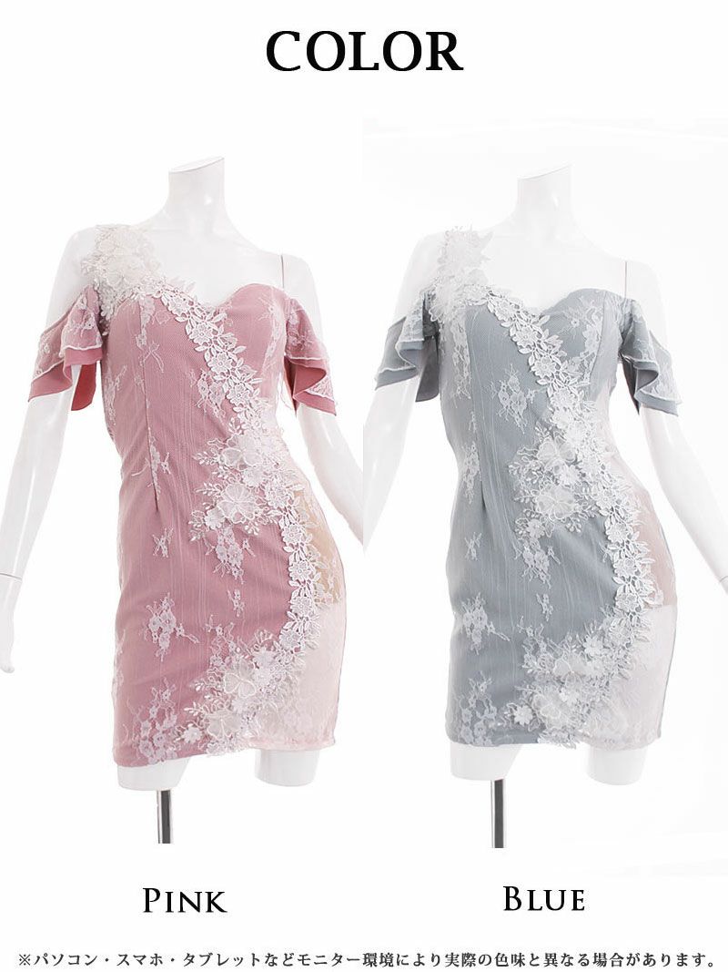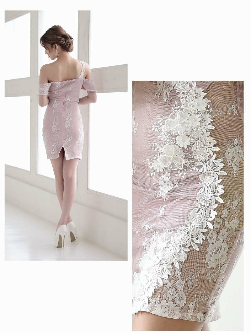 • オープンショルダーレース中ミニミニドレス かとみか着用 キャバクラドレス 【Ryuyu】(S/M/L/XL)(ブラック)