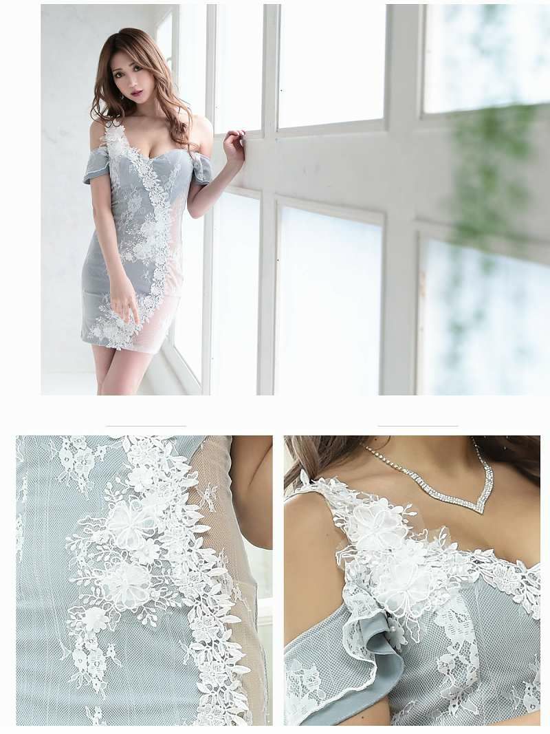 セクシーなバストカットが目を惹く バストカット袖付きオフショルダー韓国キャバワンピース【DAYS PIECE】(S/M/L)(グレー/ピンク/ブルー)