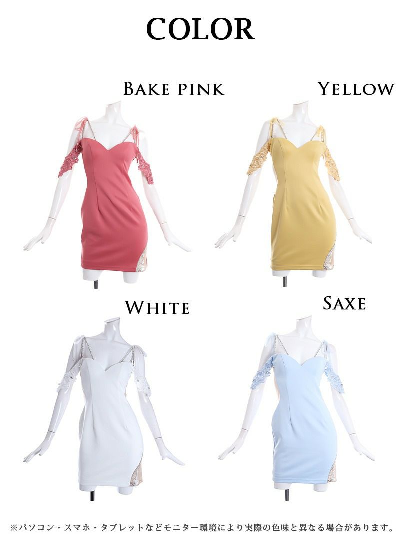4. ビジューフラワー刺繍レースタイトキャバミニドレス【Angel R/エンジェルアール】(XS/S/M)(ホワイト/ベイクピンク/サックス/イエロー)
