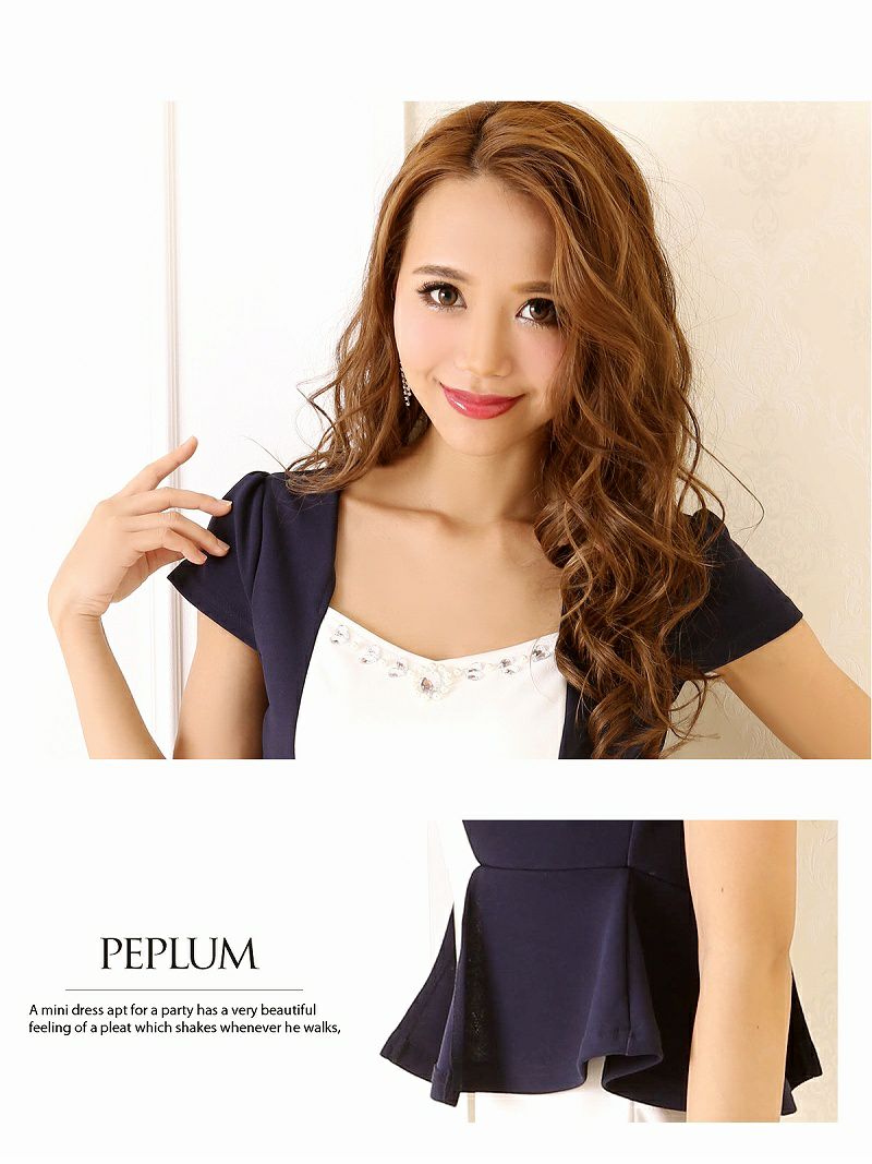 5. 【訳ありアウトレット】ミニ袖付ペプラムバイカラーキャバドレス【RyuyuChick】(S/M/L/XL)(ネイビー)