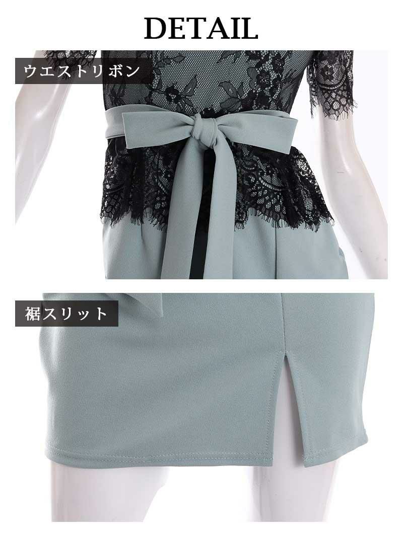 先行予約割¥6290→¥5976!※一部予約販売※バイカラーレース透けタイトミニドレス【Ryuyu】(M/L)(ブルー/ブラック) ptpl