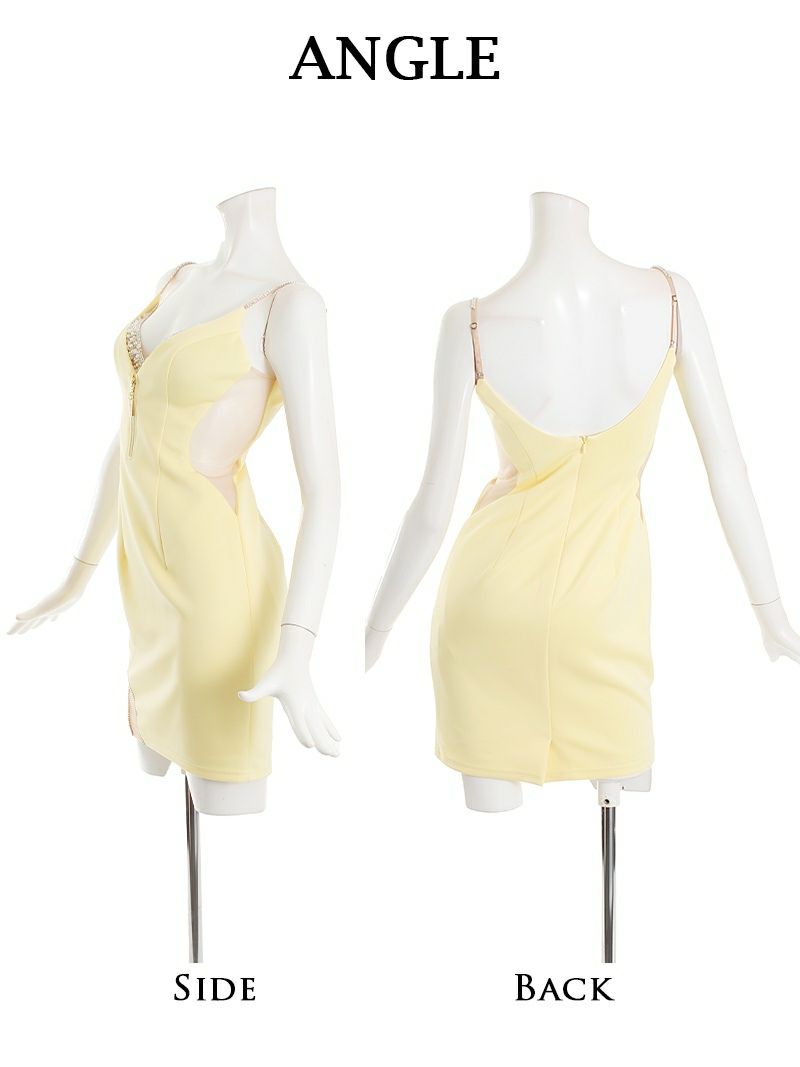 煌めくビジューが目を惹くカラードレス 【Angel R/エンジェルアール】シアーカットアウトビジュータイトミニドレス(S/M)(ホワイト/ブルー/ピンク/オレンジ)