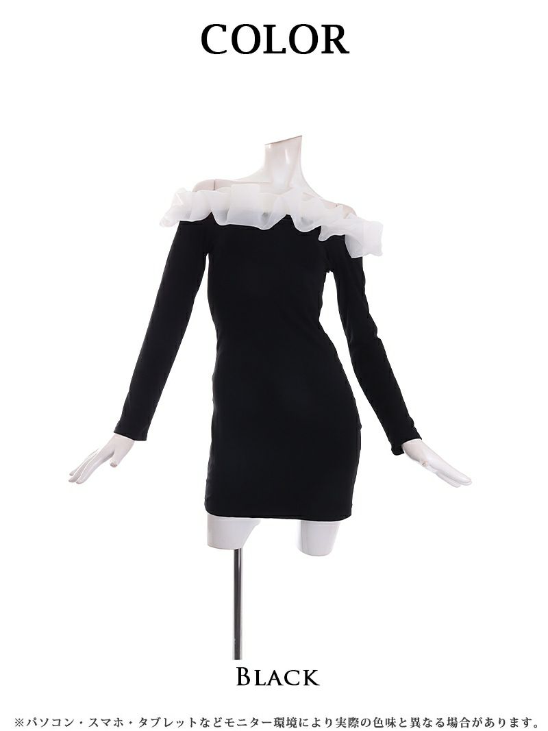 品のあるバイカラーの配色が美しい バイカラーウエストシアーブラックレースキャバドレス 加賀美早紀 着用ミニドレス【Belsia】(S/M/L)(ブラック/ピンク/イエロー) ptpl