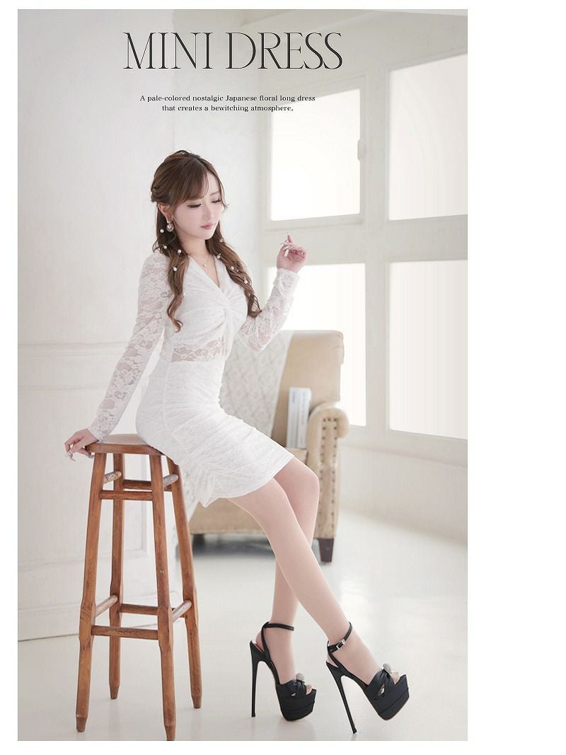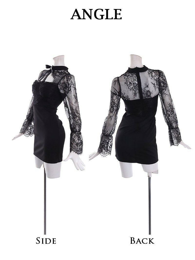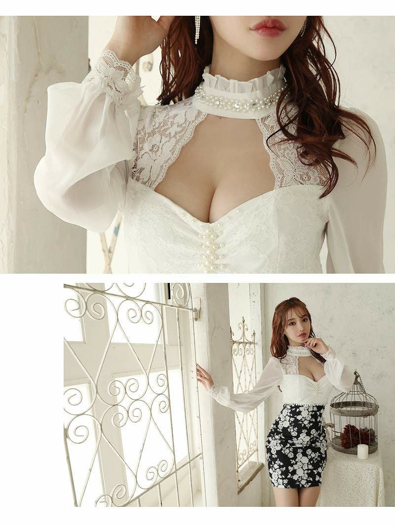 レース袖立体花柄刺繍タイトキャバドレス みみ れむ 着用 ミニドレス【Ryuyu】(S/M/L)(ブラック/ホワイト)